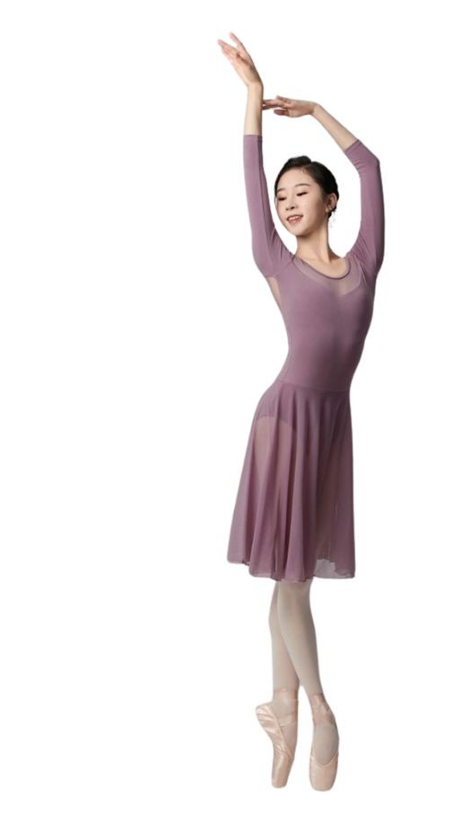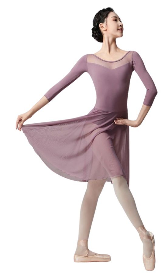 Abito danza con maniche e schiena in tulle, gonnellino incorporato