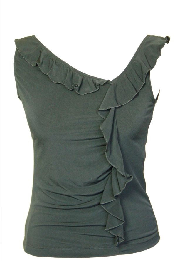 Canotta con rouches alla scollatura e sul busto in viscosa.